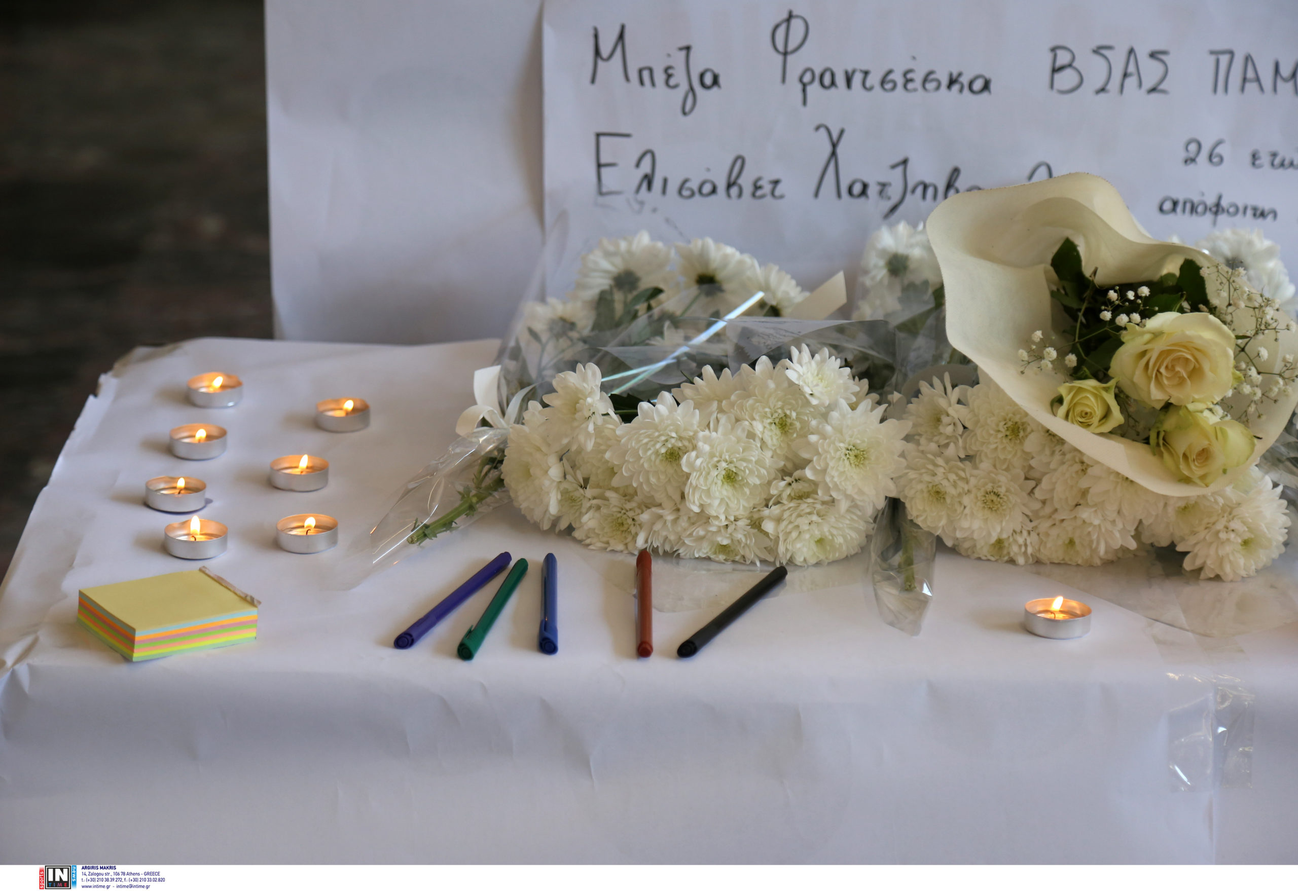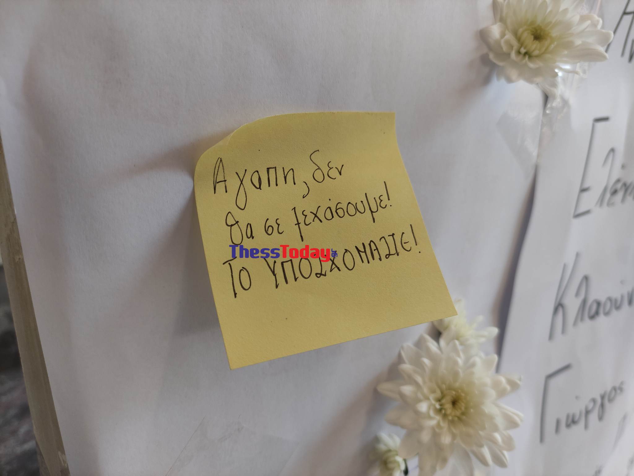 Με λουλούδια, μηνύματα και κεριά οι φοιτητές εκφράζουν την θλίψη τους για τον πρόωρο και άδικο χαμό τόσων νέων ανθρώπων.