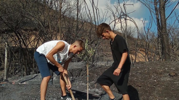 Viral έχει γίνει η φωτογραφία με τους δύο 15χρονους που φυτεύουν συμβολικά το πρώτο δέντρο στον καμένο λόφο Γαλανή στην Αρχαία Ολυμπία. Τα δύο παιδιά, ο Βασίλης Παπαϊωάννου και ο Γιώργος Γαλάννης, φυτεύουν συμβολικά το πρώτο δέντρο με τη φωτογραφία να έχει τραβηχτεί από τον πατέρα του ενός και από την ώρα που αναρτήθηκε στα social media να έχει γίνει viral με την ανάρτηση της μητέρας να συγκινεί.