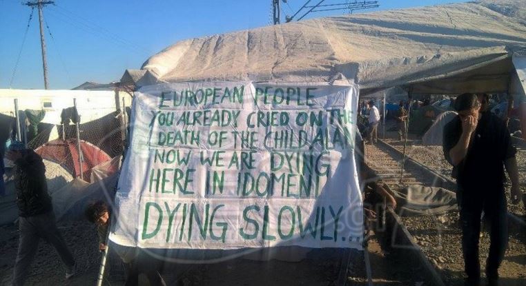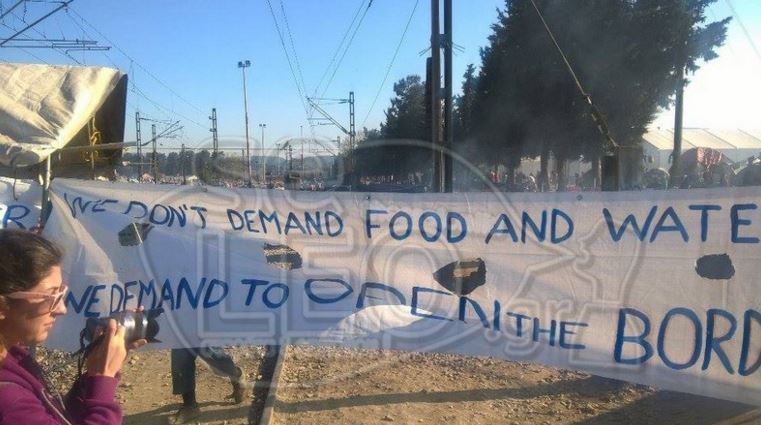 «Αργοπεθαίνουμε στην Ειδομένη» γράφουν στα πανό που έχουν αναρτήσει ενώ επισημαίνουν ότι δεν ζητούν νερό και φαγητό αλλά να ανοίξουν τα σύνορα.