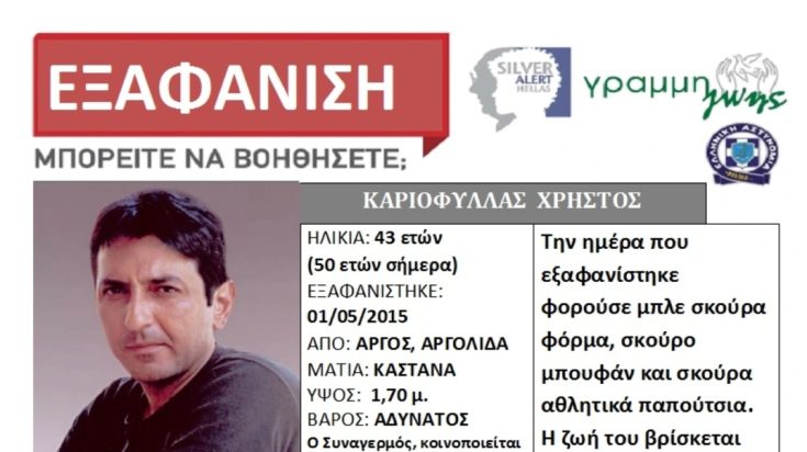 Ένα πυκνό πέπλο μυστηρίου εξακολουθεί να καλύπτει την υπόθεση εξαφάνισης του 43χρονου Χρήστου Καριοφύλλα, τα ίχνη του οποίου χάθηκαν τα μεσάνυχτα της 30ης Απριλίου προς την 1η Μαΐου του 2015 στο Άργος. Από τότε, έχουν περάσει 9 χρόνια, χωρίς να δώσει κανένα σημάδι ζωής, ενώ καμία μαρτυρία έως σήμερα, δεν έχει βοηθήσει στον εντοπισμό του. «Έχω χάσει τους πάντες. Ζω μόνο για να βρω την αλήθεια» τονίζει στο enikos.gr, ο γιος του Φώτης, ο οποίος δίνει τον δικό του αγώνα και απευθύνει έκκληση σε οποιονδήποτε γνωρίζει κάτι, να μιλήσει.