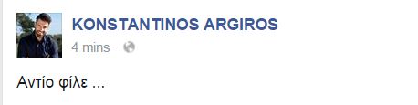 «Αντίο φίλε …» έγραψε ο Κωνσταντίνος Αργυρός στην προσωπική του σελίδα στο Facebook.