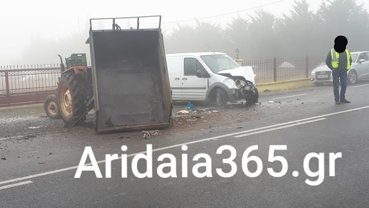 Τροχαίο ατύχημα σημειώθηκε έξω από τον επαρχιακό δρόμο Αριδαίας, στον Εξαπλάνατο, το πρωί της Δευτέρας, όταν τρακτέρ συγκρούστηκε με φορτηγάκι.