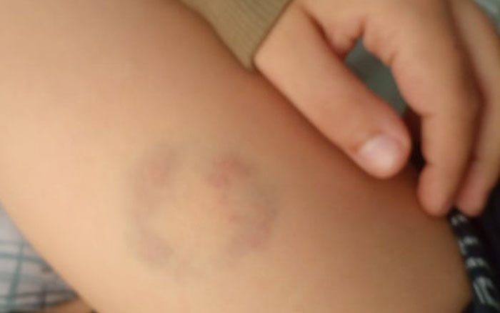 “Την περασμένη Τρίτη, όταν πήγα να πάρω το παιδί μου από το σχολείο, είδα με έκπληξη ότι αυτό έφερε γρατσουνιές πίσω από το δεξί αυτί του και στους καρπούς των χεριών του” ανέφερε η μητέρα του 11χρονου στην τοπική ενημερωτική ιστοσελίδα maxitisartas.gr. “Ρώτησα τη δασκάλα του γιου μου τί συνέβη, καθώς το παιδί μου όταν έφυγε το πρωί από το σπίτι μας δεν έφερε κάποιο τραύμα. Η ίδια μου απάντησε ότι τα συγκεκριμένα τραύματα προκλήθηκαν από την προσπάθεια που έκανε η Διευθύντρια και δασκάλα του σχολείου να απομακρύνει από κοντά της το παιδί μου, το οποίο της είχε πιάσει τα μαλλιά της. Η έκπληξή μου συνεχίστηκε όταν έφτασα σπίτι μας και άλλαξα ρούχα στο γιο μου, και πήγα να τον κάνω μπάνιο, όπου εκεί, κατεβάζοντας τη φόρμα του, είδα μια τεράστια μελανιά – δαγκωματιά στο μέσο του ποδιού του, μάλιστα πρόκειται για μια μελανιά όπου φαίνονται ίχνη δοντιών. Αυτό με έκανε αμέσως να καταλάβω ότι κάποιος δάγκωσε τον γιο μου δυνατά στο σημείο αυτό” εξήγησε.