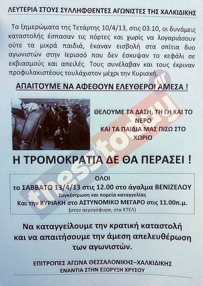 Άρχισαν οι κινητοποιήσεις για τους συλληφθέντες της Ιερισσού