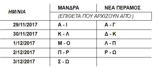 Υπενθυμίζεται ότι η κατάθεση των αιτήσεων γίνεται στον 1ο όροφο του δημαρχείου Μάνδρας και στο ΚΕΠ Ν. Περάμου. Για την κατάθεση των αιτήσεων, θα γίνονται δεκτές οι αιτήσεις με βάση το αρχικό γράμμα του επωνύμου του πληγέντος.