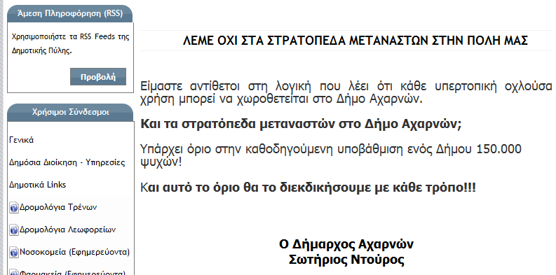 Το άνοιγμα του κέντρου μεταναστών στην Αμυγδαλέζα «αποτελειώνει την πόλη» αναφέρει σε ανακοίνωσή του ο δήμος Αχαρνών, εξαπολύοντας επίθεση κατά του υπουργού Προστασίας του Πολίτη Μιχάλη Χρυσοχοΐδη. «Ο κύριος «δεν πρόλαβα να διαβάσω», χτυπάει μια πόλη, στην οποία η εγκληματικότητα και τα ναρκωτικά είναι είδη πρώτης κυκλοφορίας, αλλά ο ίδιος έκανε πως δεν τα είδε όπως και οι πολυπράγμονες σύμβουλοι και αξιωματικοί του. Δυστυχώς, όσους και να φέρει σε 2-3 μέρες, δεν είναι αποτελεσματικός ο εν λόγω κύριος. Απλά δημιουργεί άλλη μια εστία του προβλήματος. Κοροϊδεύει τον ελληνικό λαό, ρίχνει στάχτη στα μάτια των ψηφοφόρων της Β Αθηνών και αποτελματώνει μια περιοχή ήδη υποβαθμισμένη».Στην ιστοσελίδα του Δήμου, το πρώτο πράγμα που βλέπει κανείς, όταν την επισκέπτεται είναι:
