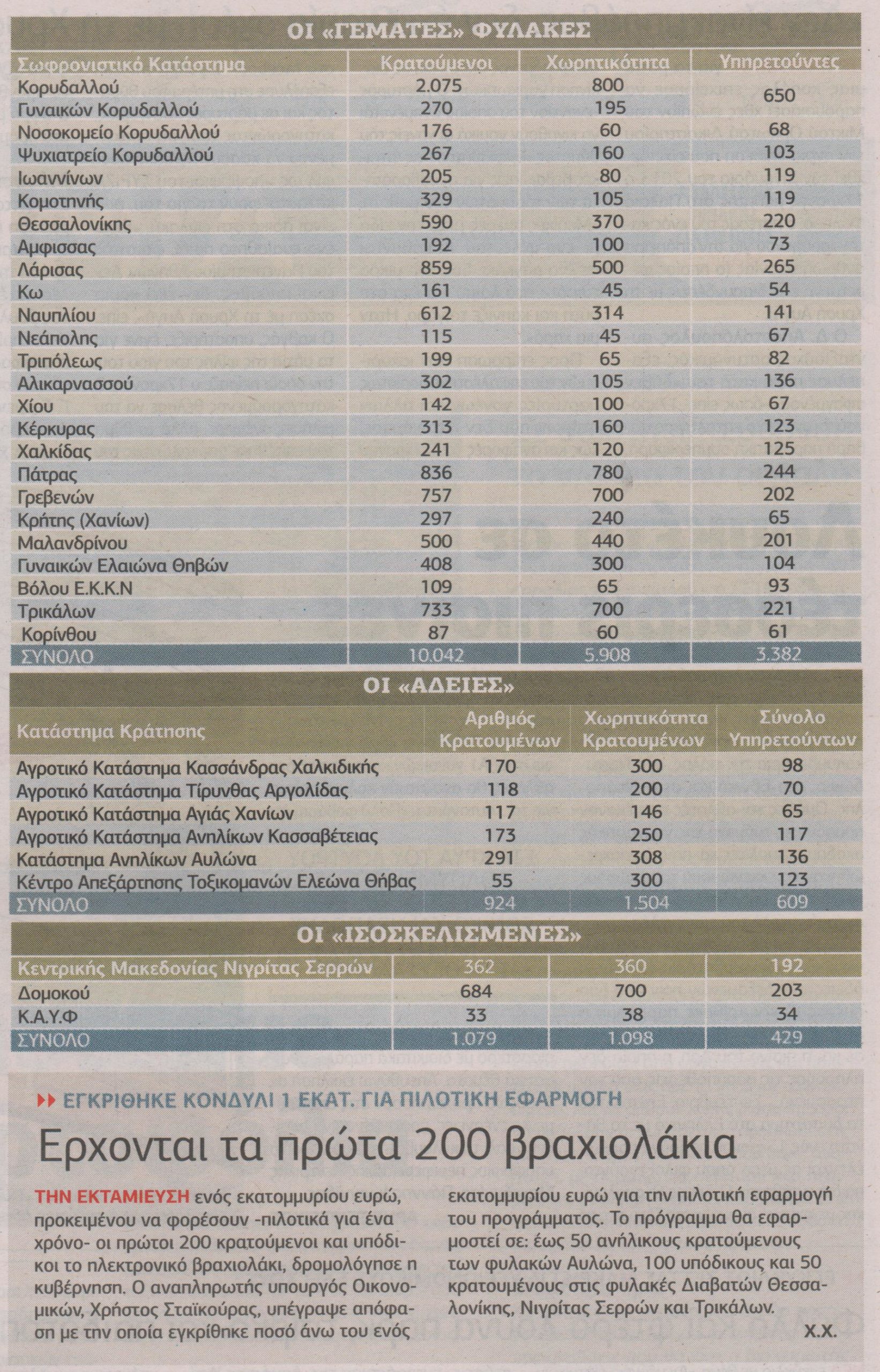 Σύμφωνα με τα στοιχεία οι κρατούμενοι στα σωφρονιστικά καταστήματα είναι 12.778, οι προβλεπόμενες θέσεις είναι 9.210 και οι φύλακες 4.641
