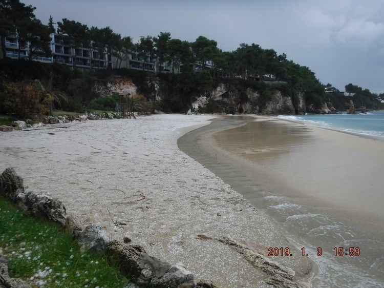 Η κακοκαιρία έπληξε το νησί της Κεφαλλονιάς και εκτός από την πυκνή χιονόπτωση, η οποία έντυσε στα λευκά τα βουνά της, το χαλάζι σκέπασε την διάσημη παραλία του Πλατύ Γιαλού. Κάτοικοι απαθανάτισαν τις μοναδικές εικόνες της παραλίας.