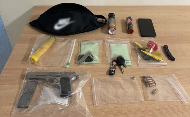 Ο οδηγός του δεύτερου αυτοκινήτου δε συμμορφώθηκε στις υποδείξεις των αστυνομικών, ανέπτυξε ταχύτητα, πραγματοποιώντας επικίνδυνους ελιγμούς και ακολούθησε καταδίωξη, έως ότου ακινητοποιήθηκε με ασφάλεια, δεσμεύτηκαν οι τέσσερις επιβαίνοντες και βρέθηκε στο εσωτερικό του αυτοκινήτου πιστόλι.
