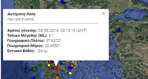 Ασθενής σεισμική δόνηση σημειώθηκε πριν λίγο και πιο συγκεκριμένα στις 6.13 το πρωί της Τετάρτης κοντά στην Τρίπολη.