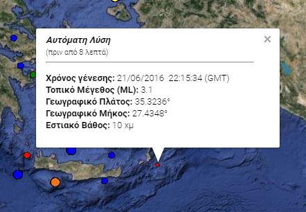Ο σεισμός ήταν 3,1 βαθμών της κλίμακας Ρίχτερ σε εστιακό υποθαλάσσιο βάθος 10 χιλιομέτρων.