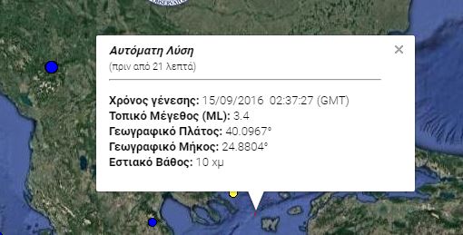 Ασθενής σεισμική δόνηση σημειώθηκε στις 5.37 το πρωί της Πέμπτης στα ανοιχτά της Λήμνου.