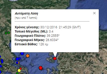 Ασθενής σεισμική δόνηση σημειώθηκε στις 23.45 στα ανοιχτά της Μυτιλήνης.