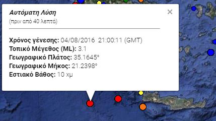 Ασθενής σεισμική δόνηση σημειώθηκε τα μεσάνυχτα στα ανοιχτά των Κυθήρων.