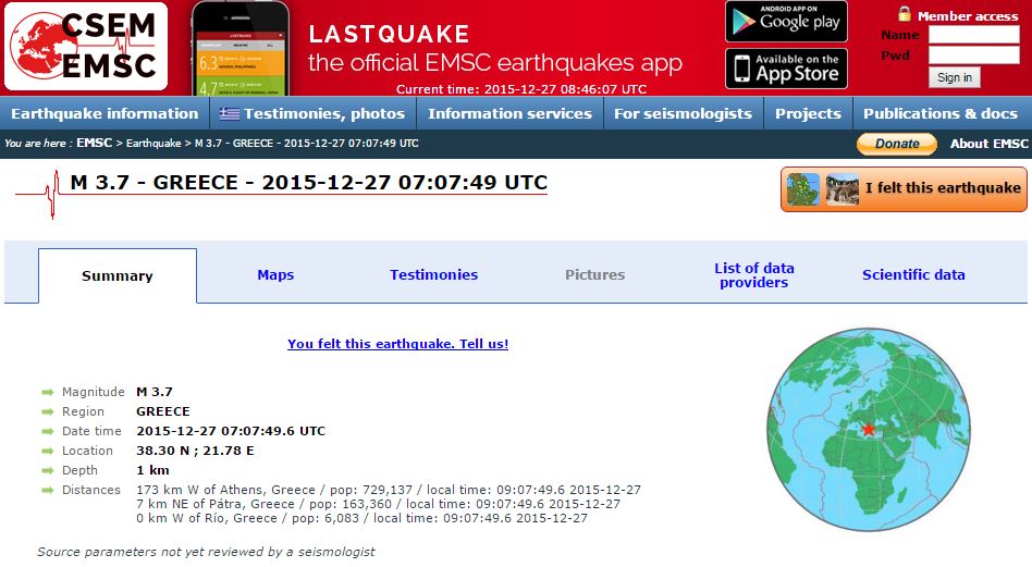 Σύμφωνα με το ευρωμεσογειακό σεισμολογικό κέντρο, η σεισμική δόνηση είχε μέγεθος 3,7 βαθμών της κλίμακας Ρίχτερ και το επίκεντρο ήταν επτά χιλιόμετρα βορειοανατολικά της Πάτρας.