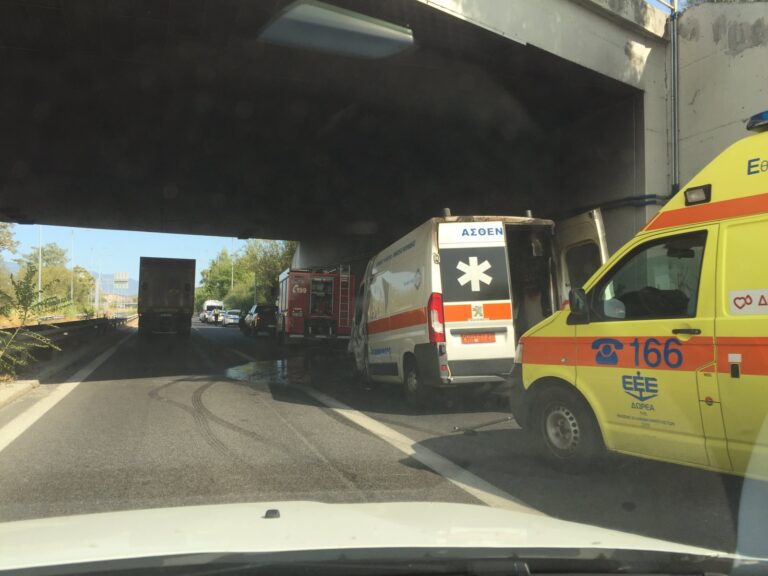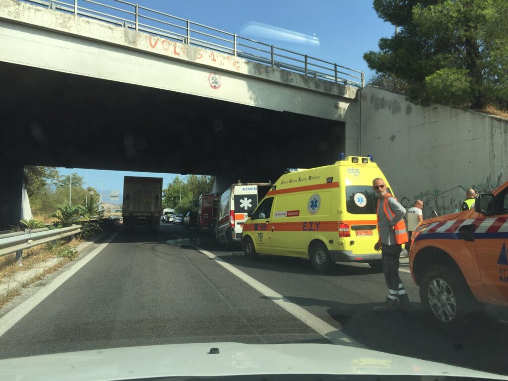 Φωτιά ξέσπασε σε ασθενοφόρο στο ύψος του κόμβου Βελεστίνου, με αποτέλεσμα το όχημα να καεί ολοσχερώς.