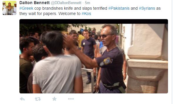 Ένα επονείδιστο περιστατικό, κρούσμα ρατσιστικής βίας, σημειώθηκε στην Κω, όπως κατήγγειλε μέσω του twitter ο ανταποκριτής του Associated Press, Dalton Bennett.