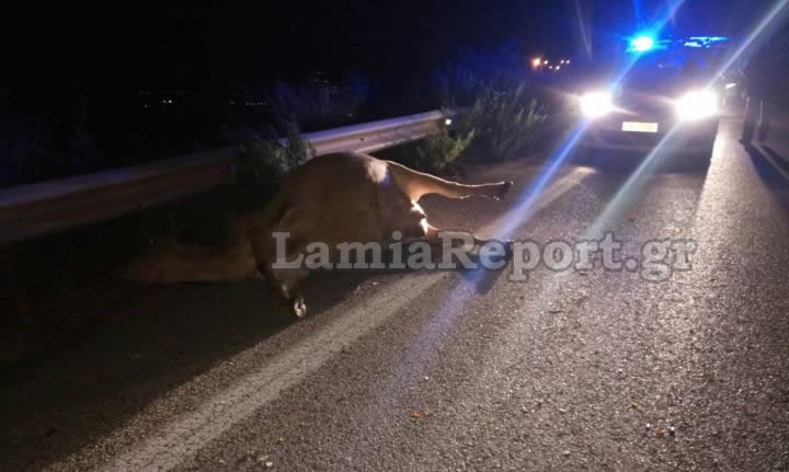 Ο οδηγός του φορτηγού κατέβαινε από Δομοκό προς Λαμία. Λίγο πριν φτάσει στη Λαμία στο ύψος της Καμηλόβρυσης, σε μια στροφή βρέθηκε αντιμέτωπος με μια αγελάδα η οποία ήταν μέσα στο δρόμο. Η σύγκρουση ήταν αναπόφευκτη και ο οδηγός στάθηκε τυχερός καθώς δεν δεν τραυματίστηκε.