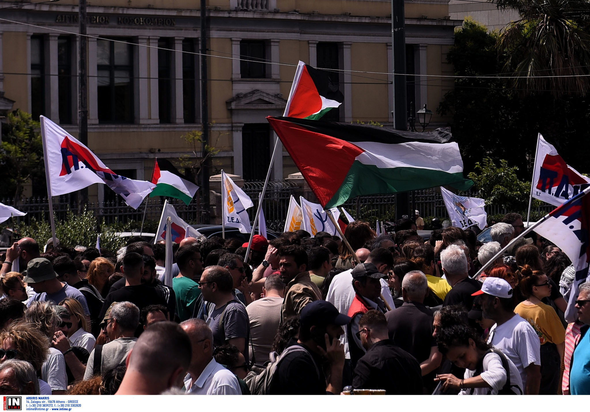 Στη συγκέντρωση συμμετέχουν πολίτες, εκπρόσωποι εργατικών σωματείων, συλλογικοτήτων, οργανώσεων της Αριστεράς, καθώς και μέλη της Παλαιστινιακής Παροικίας στην Ελλάδα.