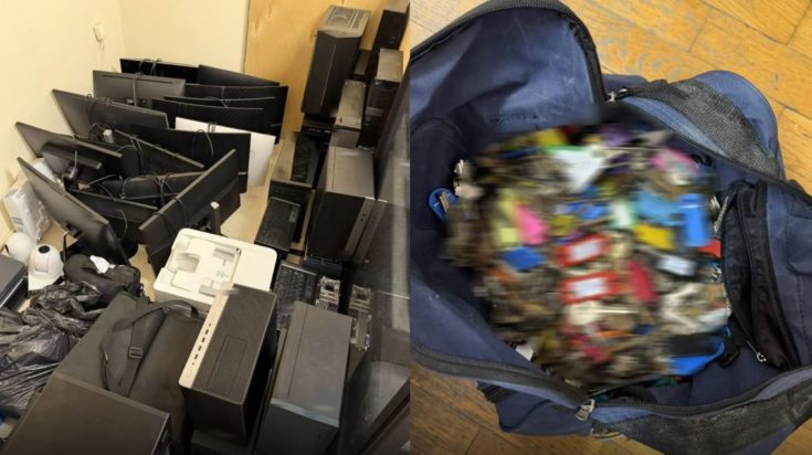 Ειδικότερα, βραδινές ώρες της Δευτέρας 8 Δεκεμβρίου, ο 47χρονος εισήλθε μέσω της ταράτσας του κτιρίου σε γραφεία Τμήματος του Εθνικού και Καποδιστριακού Πανεπιστημίου Αθηνών και αφού εντόπισε τα κλειδιά των γραφείων του κτιρίου, αφαίρεσε από τα γραφεία πλήθος ηλεκτρολογικού εξοπλισμού (μονάδες ηλεκτρονικών υπολογιστών, λάπτοπ, προτζέκτορες, πληκτρολόγια και οθόνες).