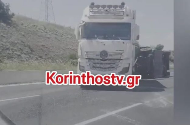 Το περιστατικό συνέβη στο 80ο χλμ, στο ύψος του Πεδίου Βολής. Σύμφωνα με το Korinthostv.gr, η νταλίκα εξετράπη της πορείας της, με αποτέλεσμα να διπλώσει η ρυμούλκα.