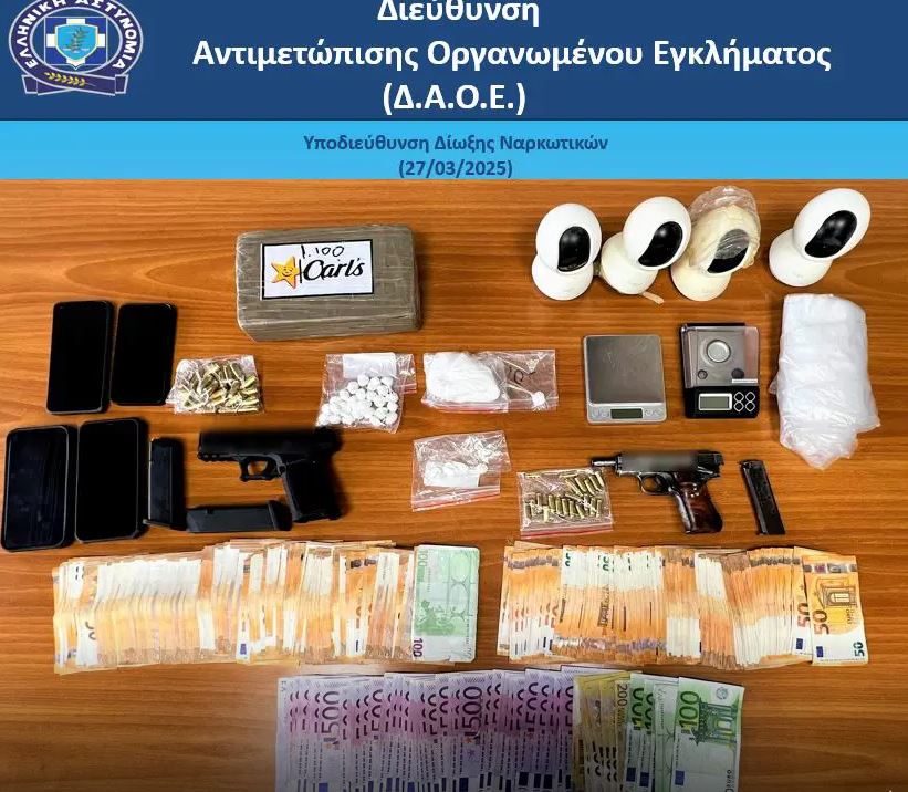 Από την Υποδιεύθυνση Δίωξης Ναρκωτικών της Διεύθυνσης Αντιμετώπισης Οργανωμένου Εγκλήματος, συνελήφθησαν απογευματινές ώρες, χθες Τετάρτη 26 Μαρτίου 2025, σε περιοχές της Αττικής, 2 άτομα, κατηγορούμενοι για κατοχή και διακίνηση ναρκωτικών ουσιών καθώς και για παραβάσεις της νομοθεσίας περί οπλών.