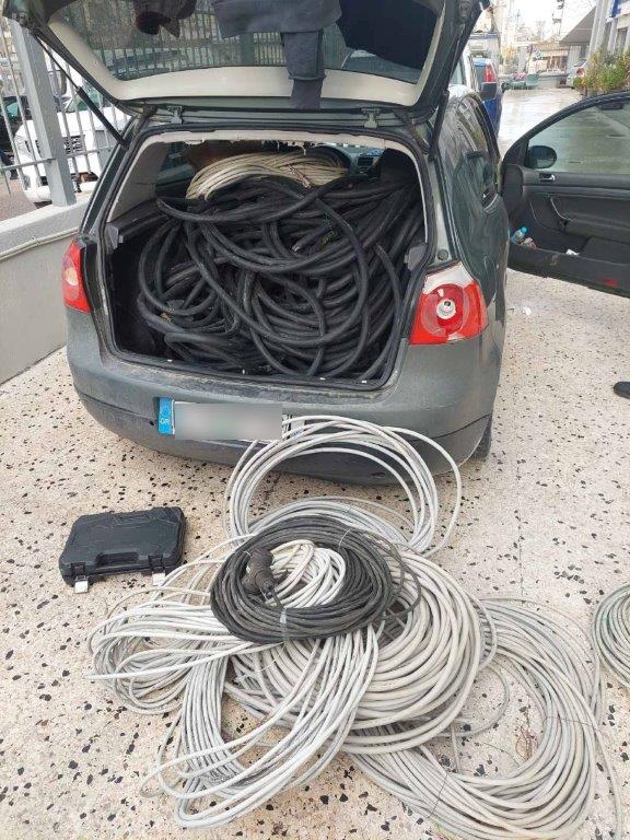Έπειτα από έρευνα που πραγματοποιήθηκε στο συγκεκριμένο όχημα, εντοπίστηκαν και κατασχέθηκαν πλήθος καλωδίων που περιείχαν χαλκό περίπου 300 κιλών, πλήθος εργαλείων και δύο ζευγάρια γάντια.