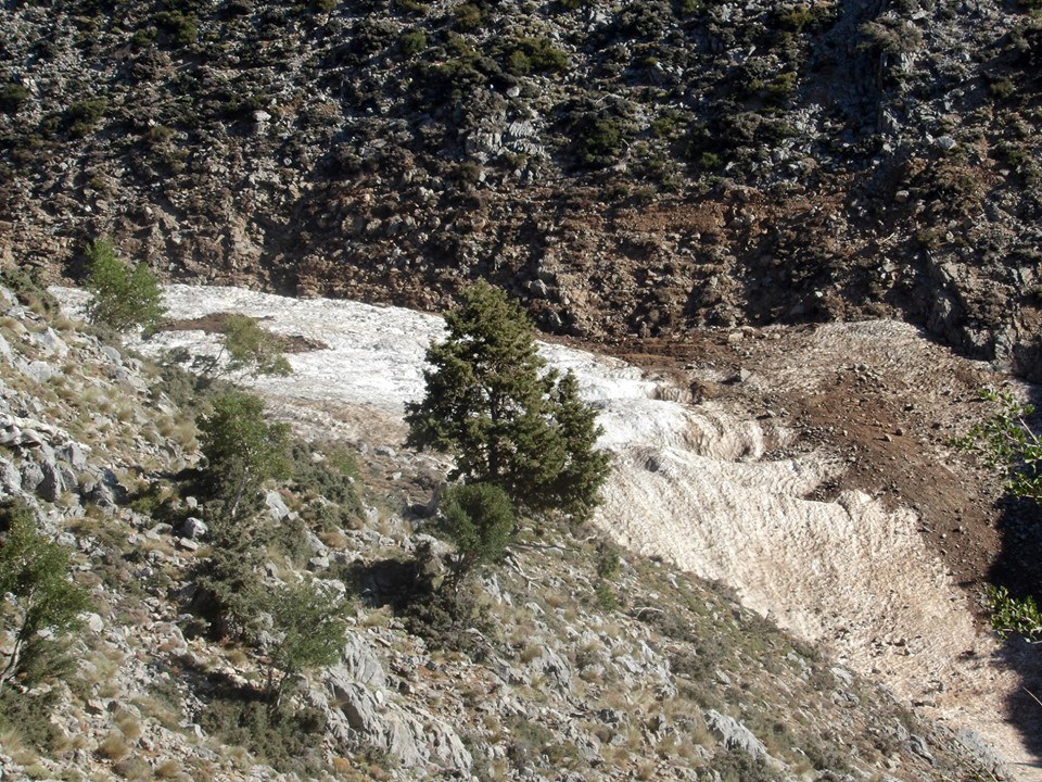 Αύγουστος μήνας και στην Κρήτη τα χιόνια ακόμα δεν έχουν λιώσει, και μάλιστα σε περιοχές με χαμηλό υψόμετρο.
