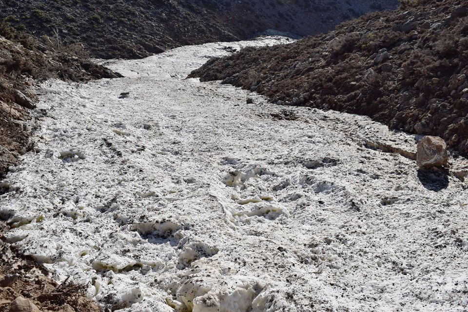 Η συγκέντρωση του παγωμένου χιονιού, πιθανόν οφείλεται σε κάποια χιονοστιβάδα του χειμώνα, όπως σημειώνει ο φωτογράφος.