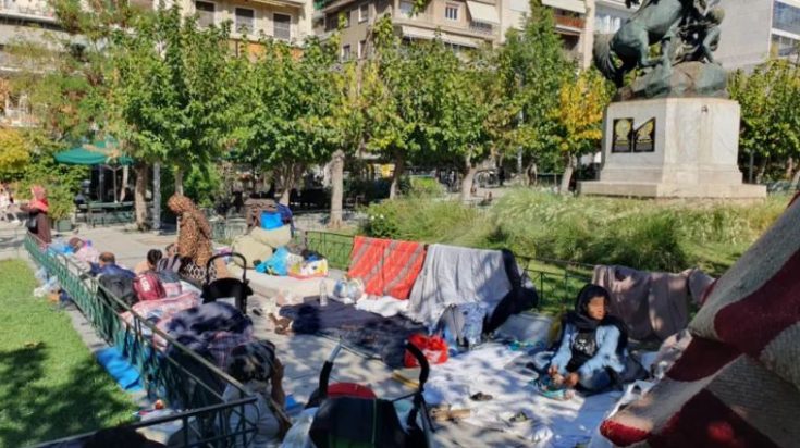 Έως σήμερα το απόγευμα, οι πρόσφυγες παρέμεναν στην πλατεία, καθισμένοι πάνω σε χαρτόνια από χαρτόκουτα, ενώ τα παιδιά ζωγράφιζαν καθισμένα πάνω στις πλάκες της πλατείας.