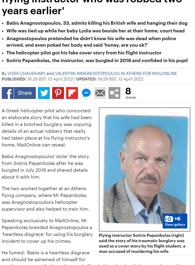 Εκτός από το άγριο έγκλημα, αυτό που εξόργισε τον εκπαιδευτή του Μπάμπη Αναγνωστόπουλου ήταν το γεγονός ότι ο καθ’ ομολογίαν δολοφόνος «αντέγραψε» την ιστορία της διάρρηξης σε βάρος του το 2018 για να γλιτώσει.