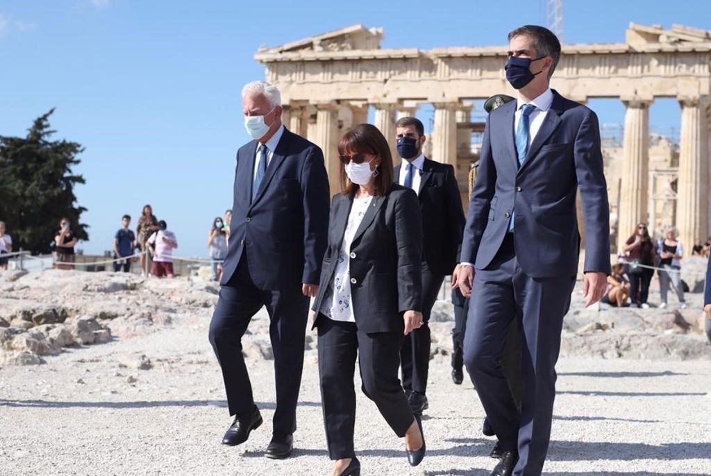 Σήμερα, μας δίνεται μια ευκαιρία για περίσκεψη, και για αναστοχασμό. Το οφείλουμε σε όσους «ήρθαν, πέρασαν, θα ‘ρθουνε, θα περάσουν». Αυτή η ημέρα άλλωστε, δίνει ένα διπλό, ισχυρό μήνυμα, τόσο για το χθες, όσο και για το σήμερα. Ένα μήνυμα που ξεκινά από τον Οκτώβριο του 1944, περνά από το 2020 και μεταδίδεται στις επόμενες γενιές και όσους θα βρεθούν σε αυτόν το Ιερό Βράχο, για να γιορτάσουν την απελευθέρωση της Αθήνας, όταν εμείς δεν θα είμαστε εδώ. Η σημερινή μέρα είναι η ημέρα σταθμός στην ιστορία αυτής της χώρας, έχει έναν ισχυρό και ανυπέρβλητο συμβολισμό: οι κατακτητές αποχωρούν, η γαλανόλευκη κυματίζει ξανά στον ιστό της.