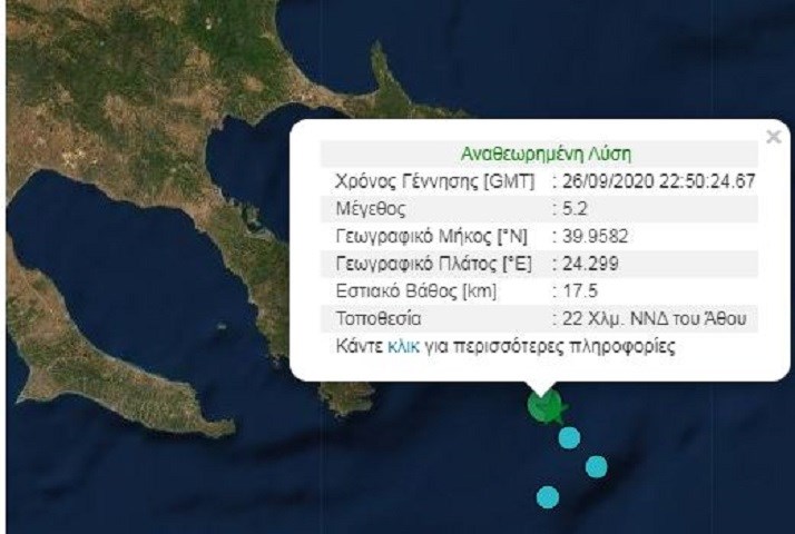 Εννέα σεισμικές δονήσεις εντάσεως από 2,4 έως 5,2 Ρίχτερ καταγράφηκαν ανοιχτά της Χαλκιδικής σε διάστημα πέντε ωρών. Ο πρώτος σεισμός σημειώθηκε στις 21:39 το βράδυ του Σαββάτου και ήταν έντασης 4,4 Ρίχτερ.