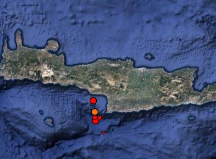 Μπαράζ σεισμικών δονήσεων σημειώθηκε το βράδυ του Σαββάτου στην Κρήτη, στη θαλάσσια περιοχή νότια των νομών Ηρακλείου και Ρεθύμνου.