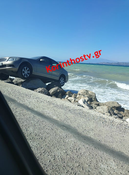 Λίγο έλειψε ένα αυτοκίνητο να καταλήξει στη θάλασσα στην παραλία Λεχαίου Κορινθίας.