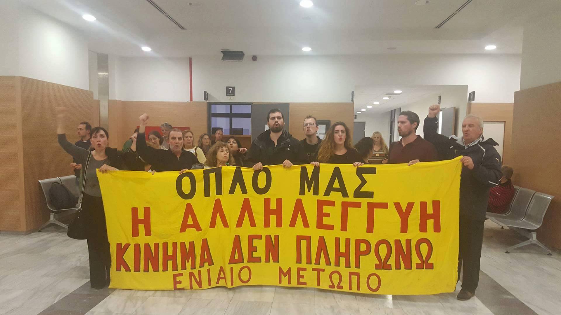 Μπλόκαραν πλειστηριασμούς και στο Ειρηνοδικείο Αθηνών άτομα του κινήματος «Δεν πληρώνω» και της Λαϊκής Ενότητας.