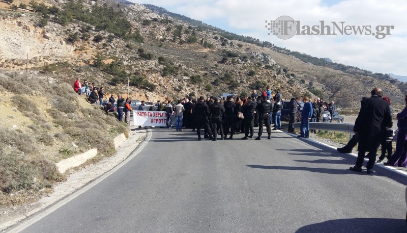 Αιφνιδιαστικό “μπλόκο” πραγματοποίησαν αγρότες στη Βιάννο στην Κρήτη, στον δρόμο από τον οποίο περνούσε ο Υπουργός Εσωτερικών και Διοικητικής Ανασυγκρότησης, Παναγιώτης Κουρουμπλής, που βρίσκεται στην Κρήτη για τα εγκαίνια του Μουσείου Ολοκαυτώματος στην περιοχή.