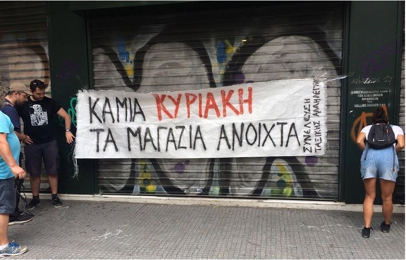 Ο γενικός γραμματέας της Ένωσης Εμποροϋπαλλήλων Δημήτρης Μπελόπουλος μιλώντας στο ΑΠΕ-ΜΠΕ ανέφερε ότι κανείς δεν πρέπει να μείνει θεατής στη κατάργηση της Κυριακάτικης αργίας τονίζοντας ότι η κατάργησή της θα έχει ως συνέπεια «την υλοποίηση των αξιώσεων των μονοπωλίων για ολοσχερείς ανατροπές στον εργάσιμο χρόνο, για ευελιξία στις εργασιακές σχέσεις και για απελευθερωμένο ωράριο λειτουργίας των καταστημάτων που θα συνοδεύεται με μισθούς των 200 και 300 ευρώ».