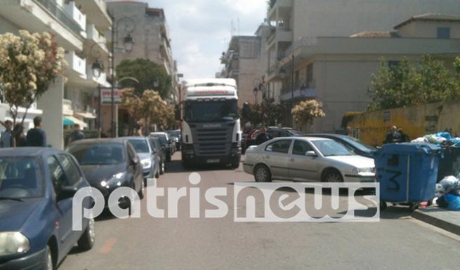 Ο νταλικέρης που έστριψε στη Μανωλοπούλου με κατεύθυνση προς το παλιό νοσοκομείο, δεν υπολόγισε ότι θα έπεφτε πάνω σε… παρκάρισμα για όσκαρ, με συνέπεια να ακινητοποιηθεί σχεδόν πάνω στη διασταύρωση.