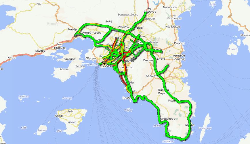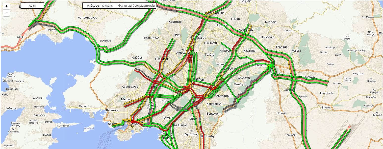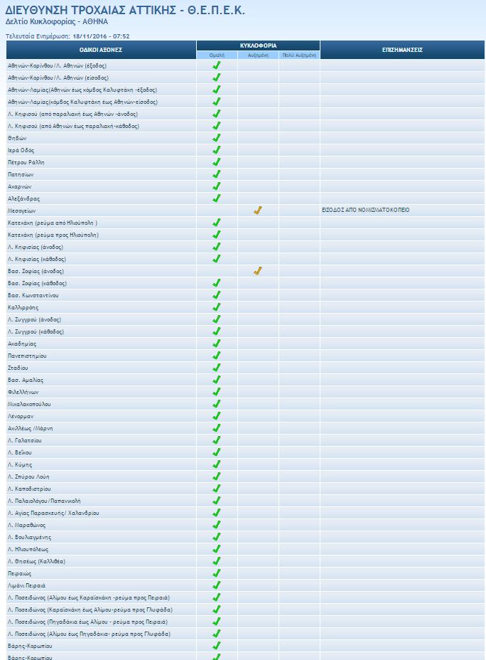 Αναλυτικά, κυκλοφοριακή συμφόρηση παρουσιάζουν οι οδοί: Άνοδος Βουλιαγμένης (Αργυρούπολη, Ηλιούπολη), Κάθοδος Κηφισίας (Πανόρμου), Ποσειδώνος προς Πειραιά (Ελληνικό), Άνοδος Αλεξάνδρας, Άνοδος Βασ. Σοφίας (Πολεμικό Μουσείο, Χίλτον), Φειδιππίδου προς Βασ. Σοφίας, Φειδιππίδου προς Μιχαλ/πούλου, Πειραιάς προς Λιμάνι (Αλιπέδου).