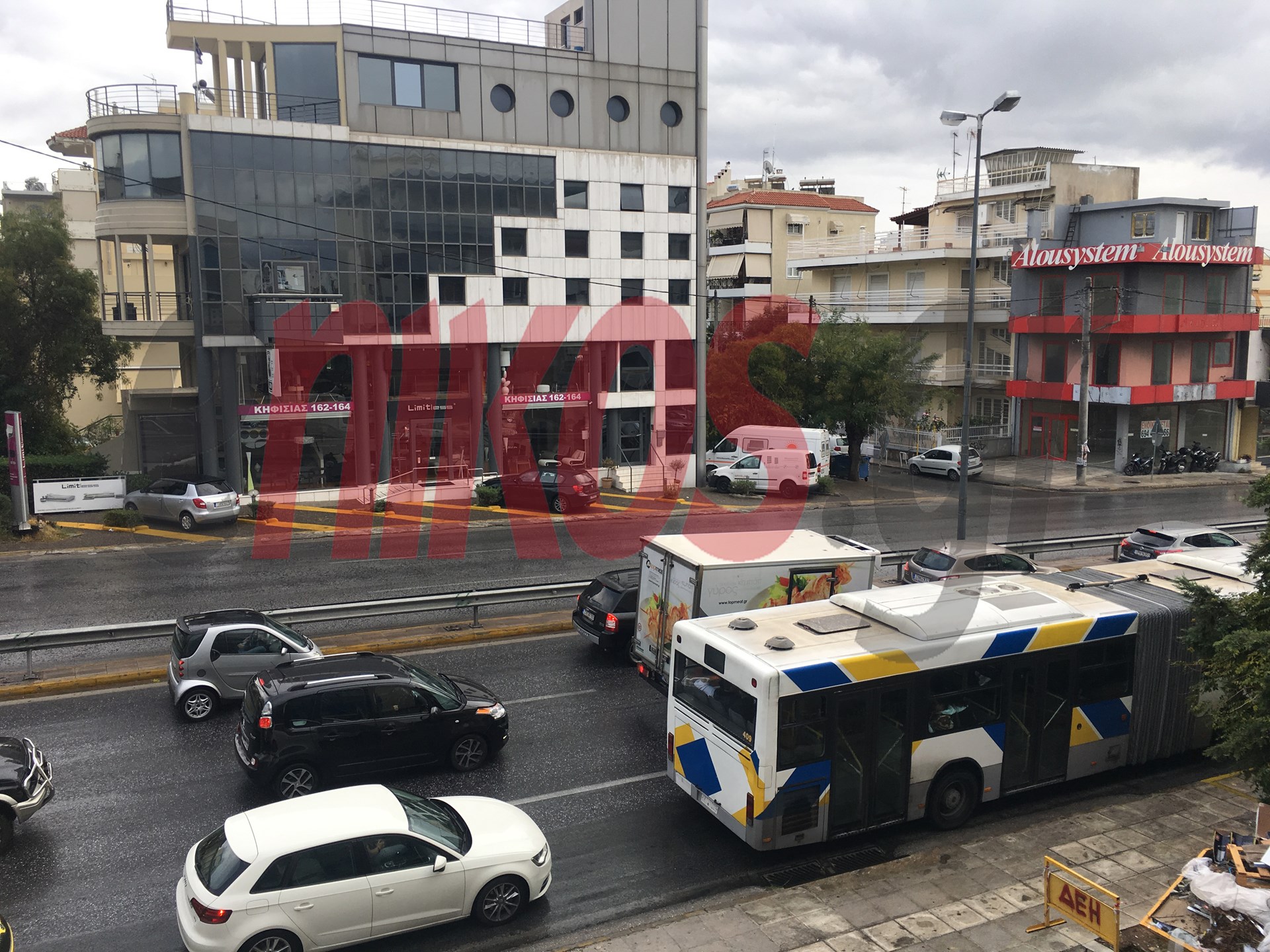 Τα αυτοκίνητα κινούνται με αργούς ρυθμούς, όπως φαίνεται στις φωτογραφίες από τη λεωφόρο Κηφισίας.