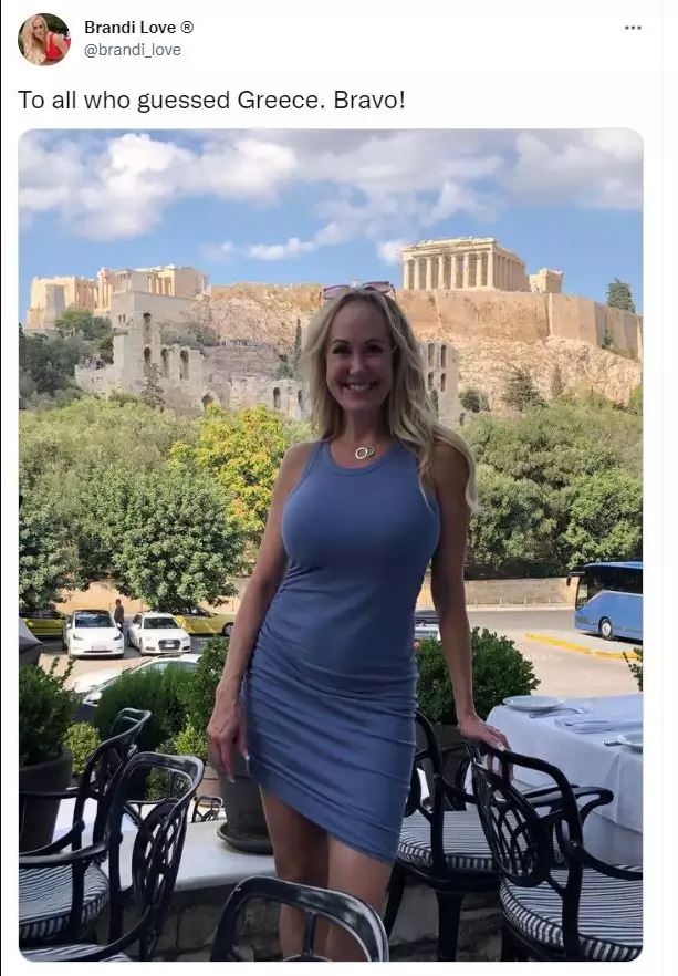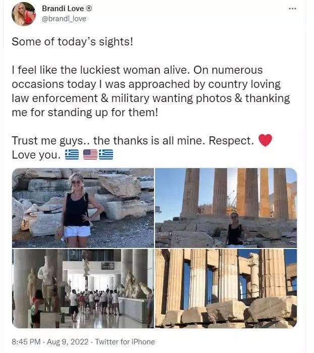 Η Brandi Love ενημερώνει τους ακόλουθούς της στα social media για το ταξίδι ανεβάζοντας μια φωτογραφία από την Αθήνα με φόντο την Ακρόπολη.