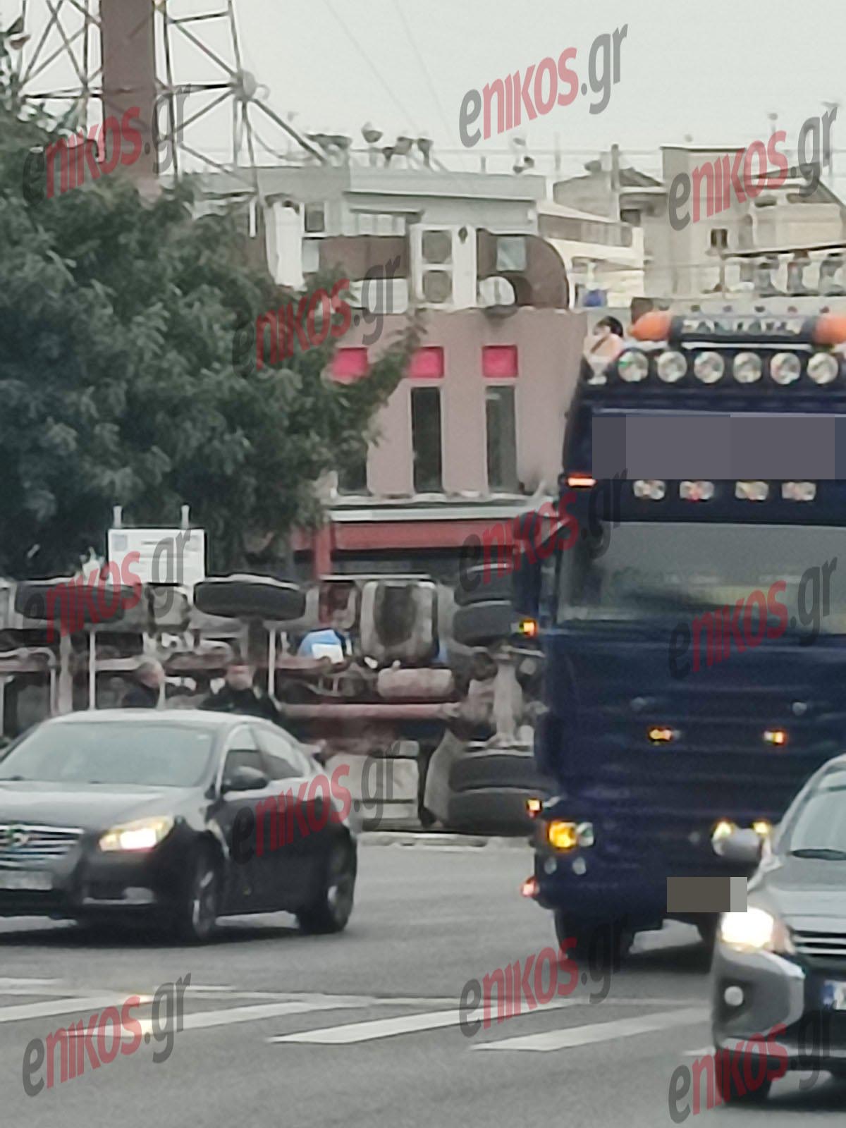 Όπως φαίνεται στις φωτογραφίες και το βίντεο που έστειλε αναγνώστης στο enikos.gr, η νταλίκα έχει αναποδογυρίσει στο οδόστρωμα και σύμφωνα με πληροφορίες, στο τροχαίο ενεπλάκη και ένα ΙΧ αυτοκίνητο.