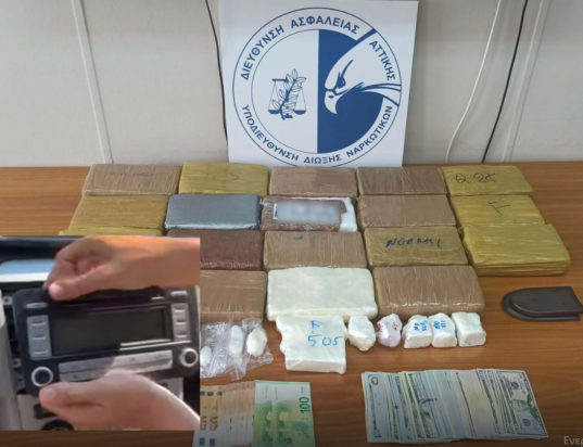 Ούτε ένα ούτε δύο αλλά 21 κιλά κοκαΐνης είχε κρύψει ένας διακινητής ναρκωτικών μέσα σε ειδικά διαμορφωμένες κρύπτες πίσω από το σύστημα του ραδιοφώνου και του καντράν ενός αυτοκινήτου, αλλά και στην μπαγκαζιέρα μίας μοτοσικλέτας. Ο 47χρονος διακινητής συνελήφθη στο Χαλάνδρι το απόγευμα της Τετάρτης (28/6), αφού προηγουμένως είχε πουλήσει σχεδόν μισό κιλό κοκαΐνης σε έναν 28χρονο αλλοδαπό.