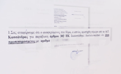 «Σας αναφέρουμε ότι ο αναφερόμενος στο θέμα, ο οποίος προσήχθη σήμερα από το Α.Τ. Κασσάνδρας για παράβαση άρθρου 302 ΠΚ διαπιστώθηκε δακτυλοσκοπικά ότι είναι προσεσημασμένος με αριθμό…», αναφέρεται χαρακτηριστικά στο έγγραφο ντοκουμέντο.