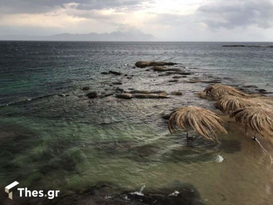 Η κακοκαιρία χτύπησε ανελέητα το μεσημέρι του Σαββάτου τη Χαλκιδική. Όπως φαίνεται σε φωτογραφίες και βίντεο, από το δυνατό μπουρίνι κόντεψαν να βυθιστούν ακόμη και σκάφη στην παραλία, ενώ οι ομπρέλες από τα beach bars της περιοχής κατέληξαν να επιπλέουν στη θάλασσα.