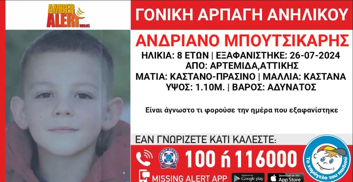 Ο Μπουτσικάρης Αντριάνο δεν έχει εντοπιστεί ακόμα. Ωστόσο πραγματοποιείται λήξη του Αmber Αlert λόγω πέρας του 48ωρου. Το Εθνικό Συντονιστικό Πρόγραμμα έγκαιρης και έγκυρης ειδοποίησης των πολιτών AMBER ALERT HELLAS, για την υπόθεση του ανήλικου είχε ενεργοποιηθεί στις 26/12/2025, κατόπιν εισαγγελικής εντολής.