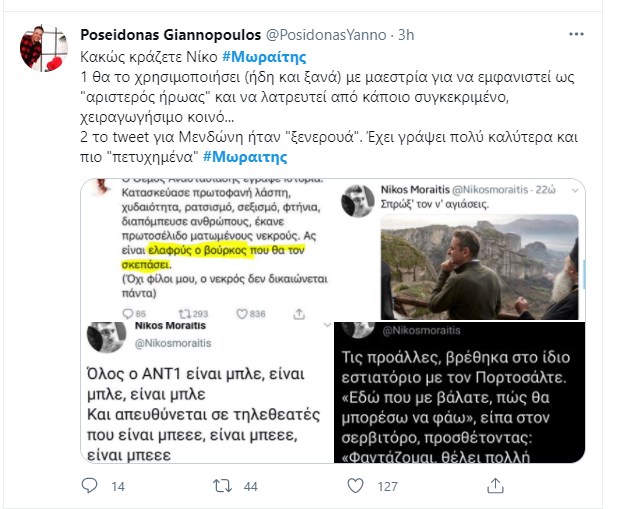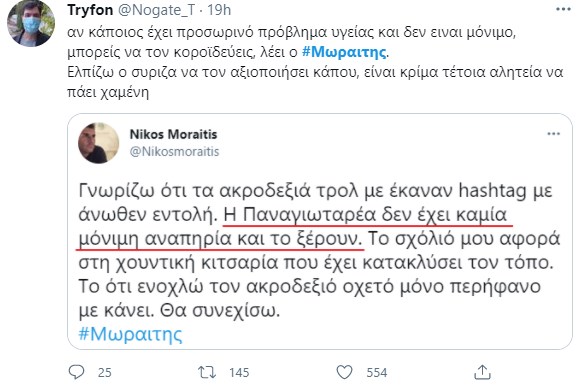 Ο Νίκος Μωραΐτης, πριν από λίγα λεπτά τοποθετήθηκε εκ νέου, μετά την ανάρτηση του υπουργού Ανάπτυξης και χαρακτήρισε το tweet ατυχές.