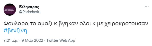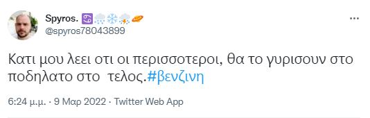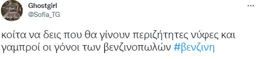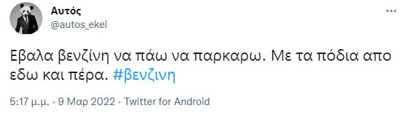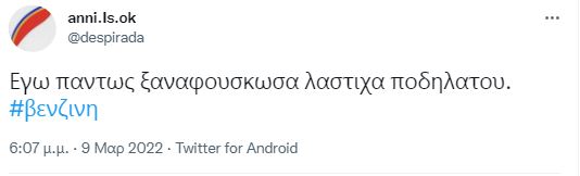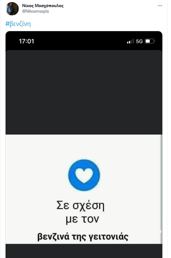 Τις τελευταίες ώρες το hashtag #βενζίνη είναι από τα πρώτα στο twitter, με τους περισσότερους χρήστες να παραπονιούνται για τις υψηλές τιμές. Βεβαίως δεν λείπουν και οι χιουμοριστικές αναρτήσεις.