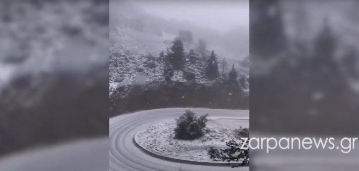 Όπως αποτυπώνεται στo βίντεο που δημοσιεύει το zarpanews.gr, ολόκληρος ο ορεινός όγκος, ακόμη και πριν την περιοχή του Ομαλού, είναι καλυμμένος από χιόνι.